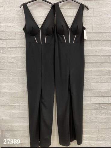 Elegantni crni ženski kombinezon - Model sa dubokim V izrezom i