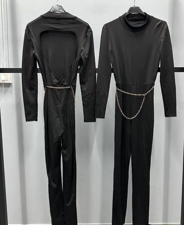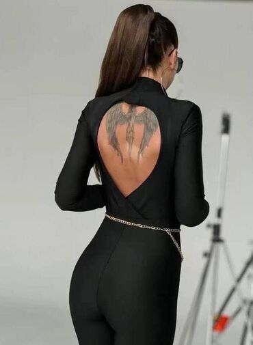 Crni ženski kombinezon sa dugim rukavima i otvorenim leđima