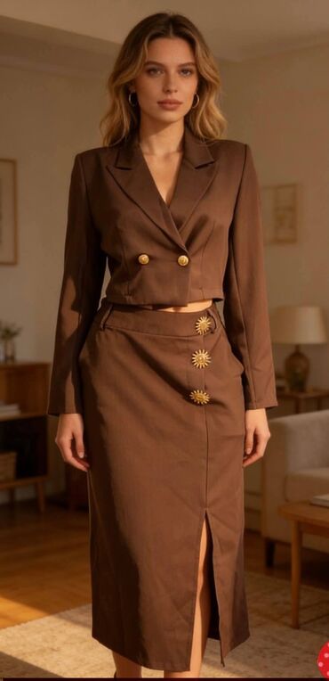 Stajling predlog: nositi kao komplet ili odvojeno — sako uz visoki struk pantalone ili farmerke, suknju uz košulju ili rolku u neutralnim tonovima.