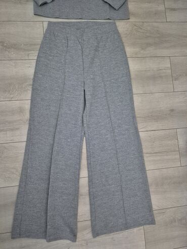 - Donji deo: široke, ravne pantalone visokog struka; elastični pojas za udobnost; dekorativni dužni štepovi napred koji vizuelno izdužuju nogu