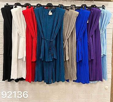 Ženski plisirani komplet – top bez rukava + široke pantalone