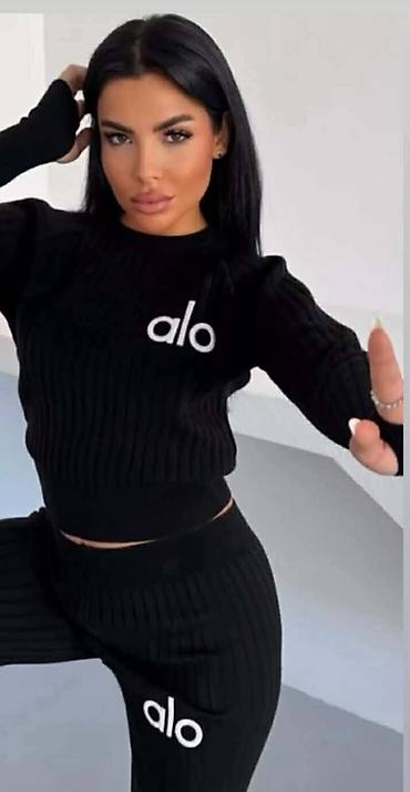 - Gornji dio: duks dugih rukava, okrugli izrez, diskretan crop kroj; “alo” logo naprijed