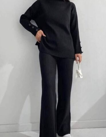 Ženski rebrasti komplet – džemper i pantalone - Gornji deo: ravnog