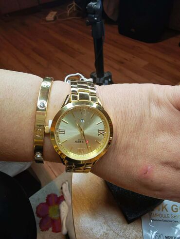 - Narukvica sata: metalna, zlatna, segmentna, sa sigurnosnom kopčom