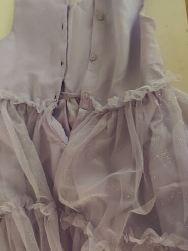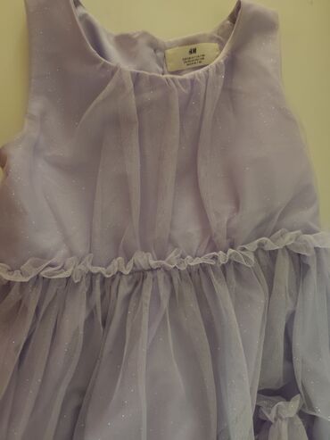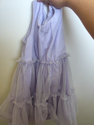 TilDečja haljina od tila u nežnoj ljubičastoj boji sa svetlucavim detaljima. Haljina je nabrana u struku i ima dodatne nabore na donjem delu, što joj daje volumen i lepršav izgled. Idealna je za posebne prilike ili svakodnevnu igru. Unutrašnja postava obezbeđuje udobnost, dok lagani til stvara efekat sjaja. Haljina je polovna tj nošena 3 puta. Sada nam je mala a zaista je prelepa.
