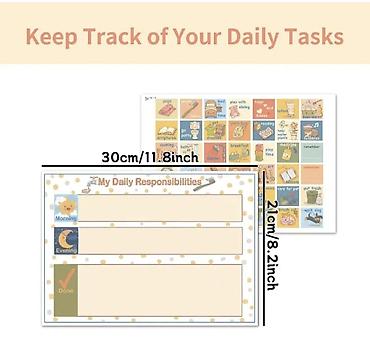 - Tabla “My Daily Responsibilities” sa tri polja: Morning, Evening i Done – za jednostavno raspoređivanje aktivnosti tokom dana.