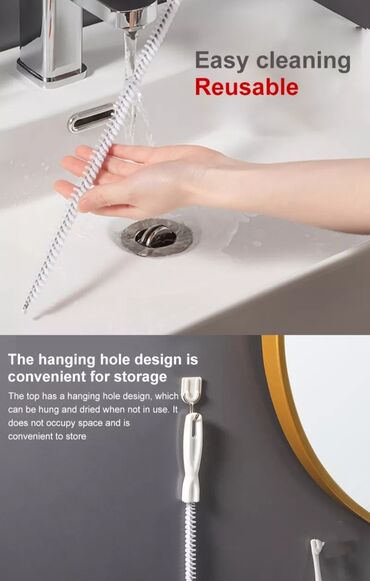 Odpušivač za odvod savitljiv je i dužina je 45 cm. Na drškama ima otvor za lakše odlaganje. Na njemu su stavljena tanka vlakna na fazon četke za pranje flaša tako da mogu uviti i dlake oko nje.