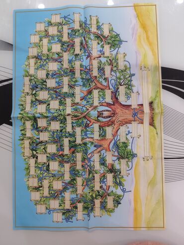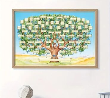 - Veliki dekorativni poster sa ilustracijom drveta namenjen popunjavanju porodičnog stabla.