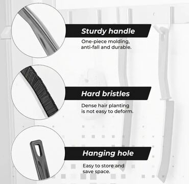 - Višenamenska upotreba u kupatilu, kuhinji, na pločicama, prozorima, kliznim vratima i drugim mestima sa teško dostupnim ivicama. U CENI su 3 četke