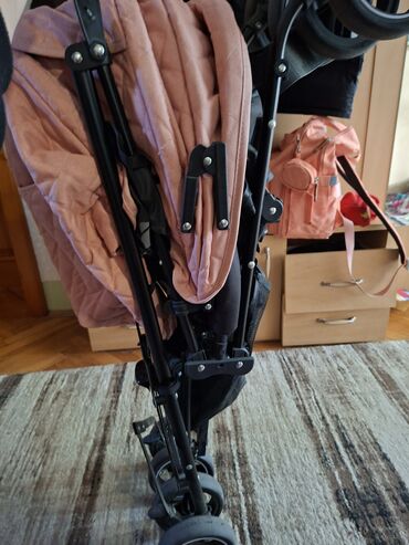 - Lagana, kompaktna kišobran kolica sa dvoslojnim krovom u roze boji i prošivenom unutrašnjom stranom