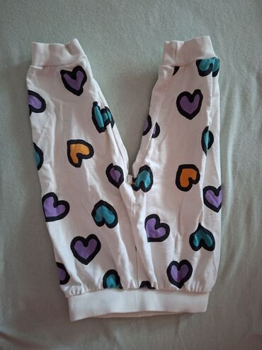 - Pantalone/trenerka u istom dezenu kao dukserica – bele sa šarenim srcima, elastičan pojas i ranfle na nogavicama, udobne za igru i svakodnevno nošenje.