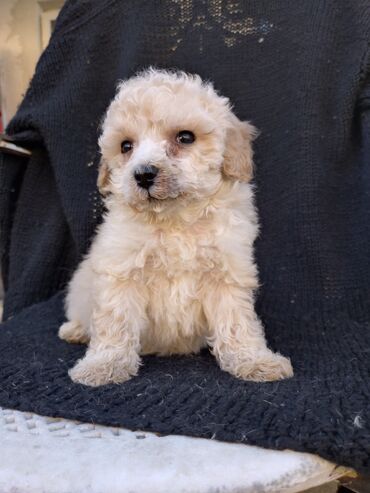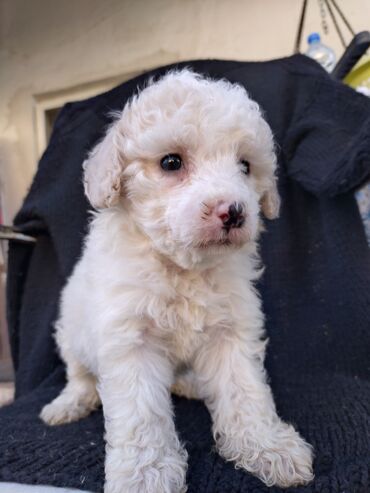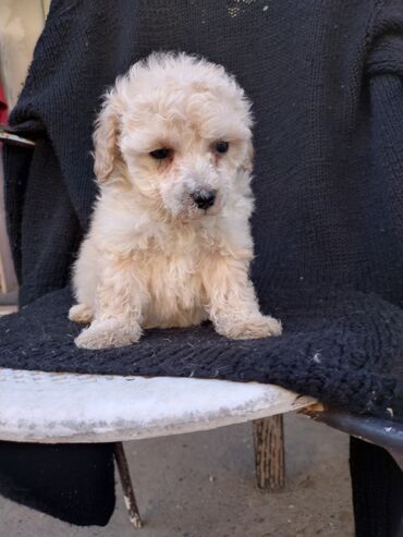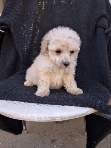 Rasa/Tip: Štene malog rasta, kovrdžave bele do krem dlake (podseća na pudlu/bishon tip)