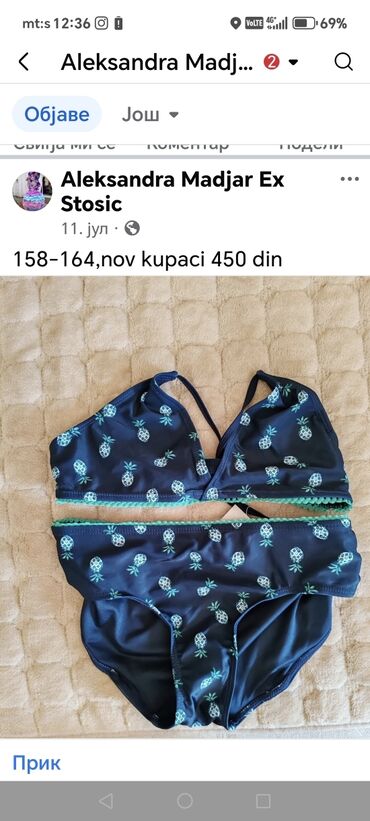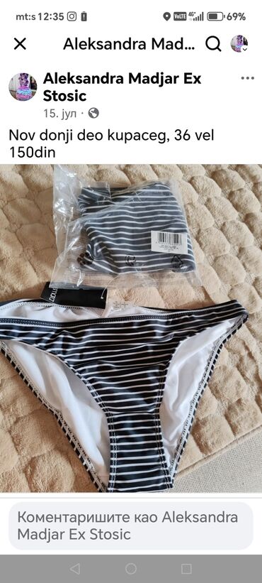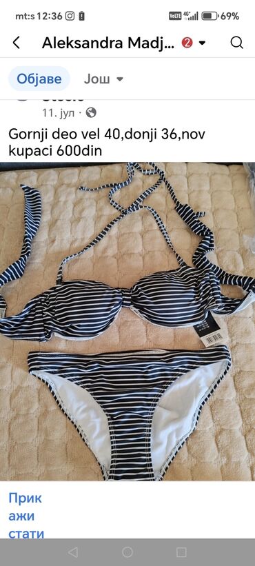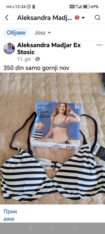 Gornji deo kupaćeg kostima u beloj boji sa teget prugama. Poseduje