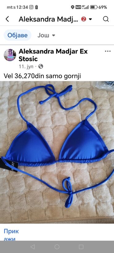 Gornji deo kupaćeg kostima u beloj boji sa teget prugama. Poseduje podesive trake za vezivanje oko vrata i leđa, što omogućava prilagođavanje različitim obimima i udobno nošenje. Grudnjak je dizajniran da pruži podršku i oblik, idealan za letnje aktivnosti na plaži ili bazenu.