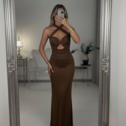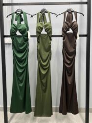 Haljina na preklop sa cvetnim printom - Model: ženska haljina A-kroja, midi dužine - Dizajn: sitni cvetni dezen u nijansama narandžaste, bele i zelene na tamnoj podlozi - Gornji deo: V-izrez napre...