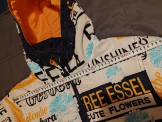 - Topla, postavljena kapuljača sa učkurima, unutrašnjost kapuljače narandžasta.