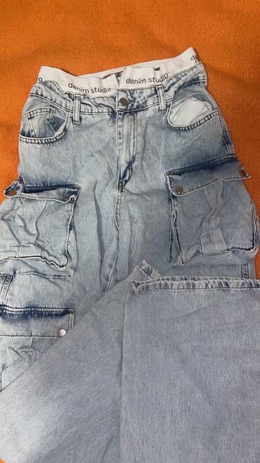- Struk: srednji, sa petljama za kaiš; unutrašnji pojas sa brendom “denim studio”