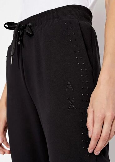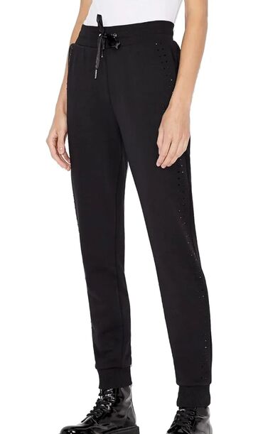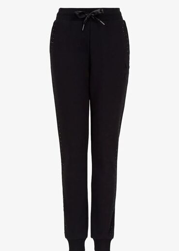 PamukŽenske crne trenerke sa ukrasnim detaljima.
