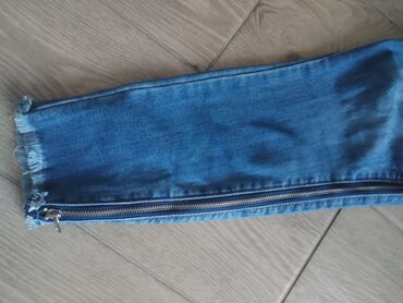 Bershka ženske farmerke – slim/skinny kroj - Brend: Bershka (etiketa vidljiva) - Veličina: EU 36 / USA 04 / MEX 26 - Model: uske nogavice (skinny), srednji struk - Boja: tamniji indigo teksas sa s...