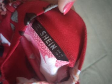 Ženska odeća – 4 komada (dimenzije i informacije sa slika) 1) Crvena košulja/haljina bez rukava - Odgovara: M–L - Dužina: 80 cm - Poluobim: 42–50 cm - Detalji: kragna sa naborima, kratki rukavi, k...5 000 RSD