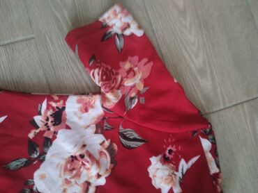 Ženska odeća – više modela 1) Haljina Just Woman, veličina M/L - Floralni print, V-izrez, kratki rukavi - Elastičan struk sa trakicama za vezivanje - Dužina: 100 cm - Poluobim: 32–60 cm - Cena: 10...2 000 RSD