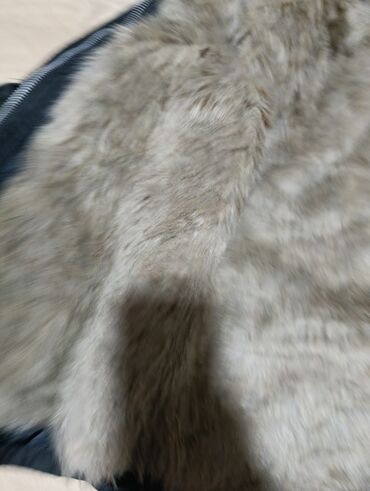 Duga crna prošivena jakna/kaput sa bogatim prirodnim bež krznenom postavom i detaljima: - široka krznena kragna koja se spušta duž cele prednje strane - krzneni manžetni na rukavima - dužina ispod...