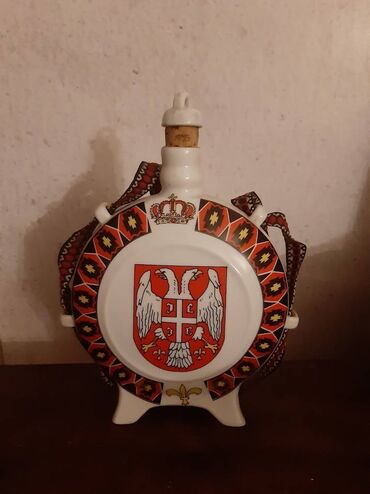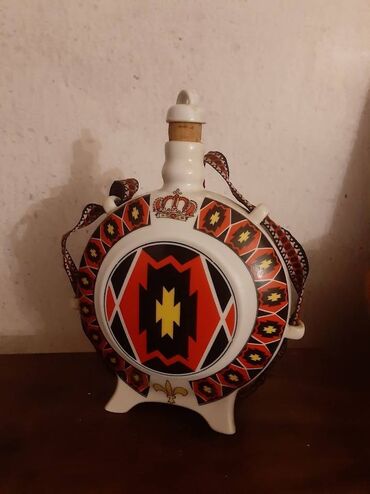 Dekorativni predmet sa etno motivima, pogodan za izlaganje ili kao suvenir/ukras u domaćinstvu. Praktična forma čuture omogućava i upotrebu kao flaše za rakiju ili vino.
