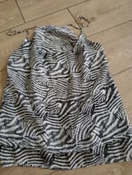 Ženska top majica bez rukava, model halter. - Boja: svetlo roze sa diskretnim prugastim (rebrastim) teksturnim uzorkom - Kragna/vezivanje: halter stil sa tankim naramenicama koje se spajaju iza vr...