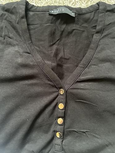 Ženska majica sa kratkim rukavima – dvostrana i suknja xl/xxl - Dve strane/nošenja: - Strana 1: crna, jednostavna, s diskretnim ukrasnim kamenčićima u obliku male aplikacije ispod izreza. - Strana...