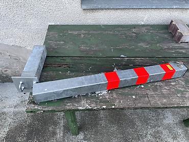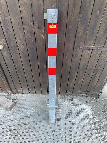 - Više komada vidljivo na fotografijama. Dimenzije su standardne za stubne parking barijere kvadratnog profila; predviđene za ankerisanje u pod.