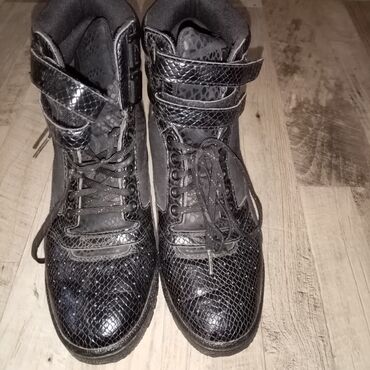 Ženska obuća – paket raznih modela - Patike sa pertlama i bočnim rajsferšlusom: tamne, sa šljokičastim/metaliziranim delovima i dekorativnim nitnama na prednjem delu. Udoban nizak đon, klasično pe...