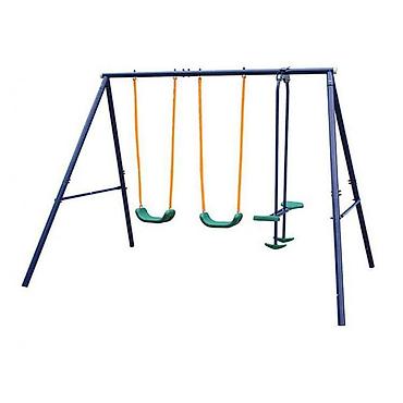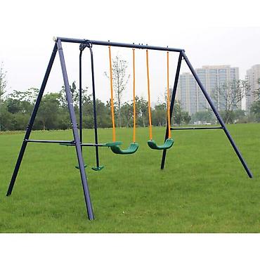 Čelična konstrukcija na kojoj se nalaze dve ljuljaške i klackalica.