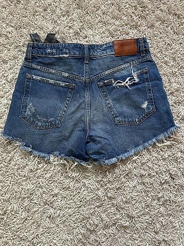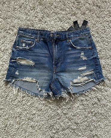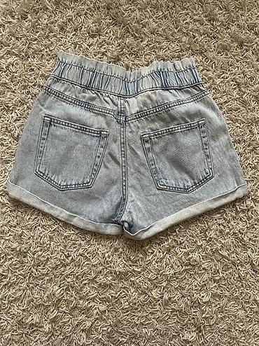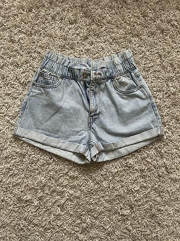 H&M Divided teksas šorts - Model: kratki džins šorts sa efektnim “distressed”/poderanim detaljima i neravnom, resastom ivicom - Boja: svetlo plava isprana - Kroj: klasičan petodžepni, srednji stru...