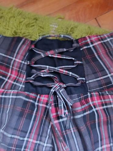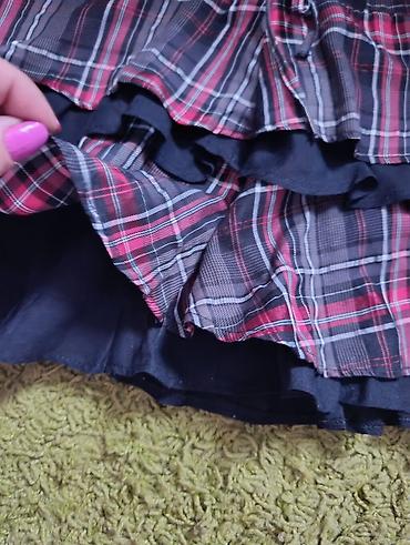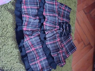 Crna suknja od eko kože, midi dužine, sa efektom nabora/ručanja uz desnu stranu i diskretnim prednjim prorezom. Pencil kroj prati liniju tela i naglašava struk. Materijal je mekan, sa blagim sjajem...