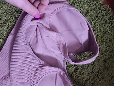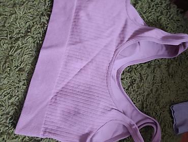 Ljubičasti ženski top na tanke bretele - Veličina: S–M - Dužina: 50 cm - Poluobim: 40–55 cm (elastično) - Materijal: 50% poliester, 50% viskoza - Poreklo: Made in Italy - Model: uski kroj, okrugli...