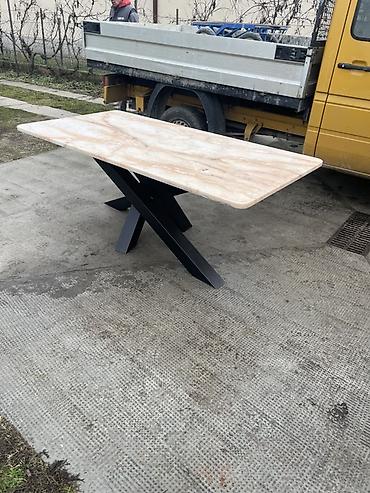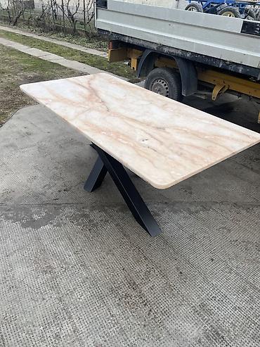 Trpezarijski sto sa pločom od kamena i metalnim postoljem