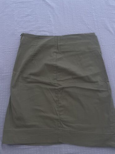 Drugi materijalBraonkasta ženska suknja, mini/kratka dužina. A-kroja sa blagim trapez efektom. Sa leve strane nalazi se dekorativni preklop sa tri velika dugmeta u tamnoj boji. Na bočnom šavu je skriveni rajsferšlus za lakše oblačenje. Ravni pojas, šav po sredini napred i nazad, široki porub. Materijal je glatka tkanina prijatna za leto i prelazne sezone. Lako se kombinuje uz košulje, majice i patike ili sandale. Neutralna boja pogodna za svakodnevne i casual kombinacije.