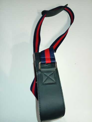 - Kaiš: širok, podesiv, tkan, u tamnoplavo-crvenim prugama, sa podstavljenim ramenim uloškom za udobnost; metalne kopče i polukrugovi