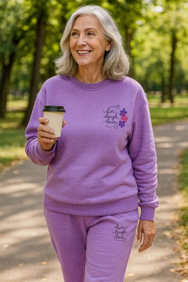 Ženske komplet trenerke – dukserica i donji deo - Model: dvoslojni komplet za svakodnevno nošenje - Gornji deo: ravni kroj, okrugli izrez, duži rukavi sa manžetnama; diskretna etiketa na donjem ru...