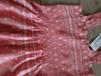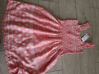 Dečija haljina sa dugim rukavima, bele osnove sa printom u roze tonovima (srca na štapiću i bombonice). Okrugli izrez sa ružičastim obrubom, blago strukirana linija i suknja A-kroja koja lepo pada....