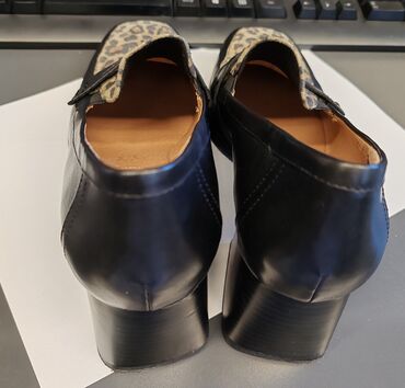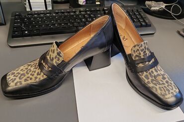 - Materijal: crna glatka koža sa prednjim delom od materijala sa leopard printom; kožni uložak