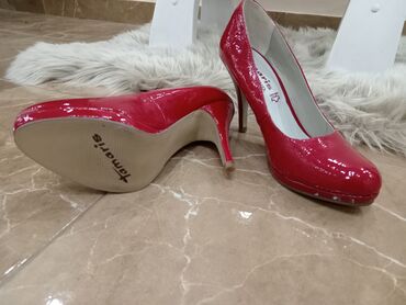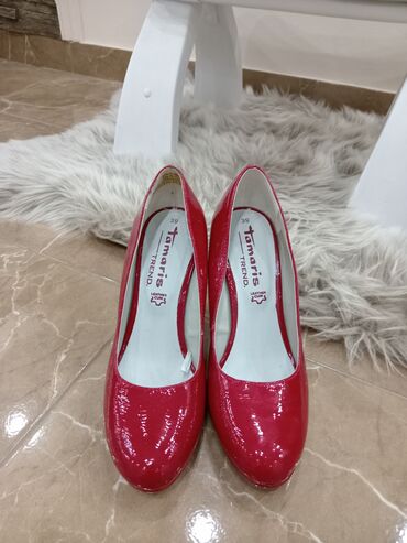 Elegantne ženske salonke u jarko crvenoj boji. - Model: klasične špic salonke - Materijal gornjišta: meka antilop/brušena koža - Unutrašnjost: glatka podstava, udoban uložak - Potpetica: visoka i ...