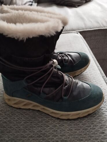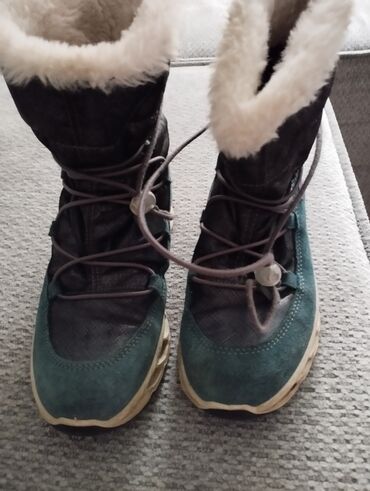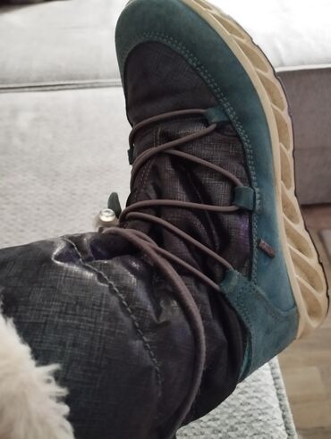 Napomena: Boje na fotografijama su tamno tirkizna/teal (brušena koža), crna/dark antracit (tekstil) i bež đon; unutrašnje krzno u svetloj bež/ekru boji.34br