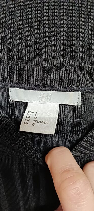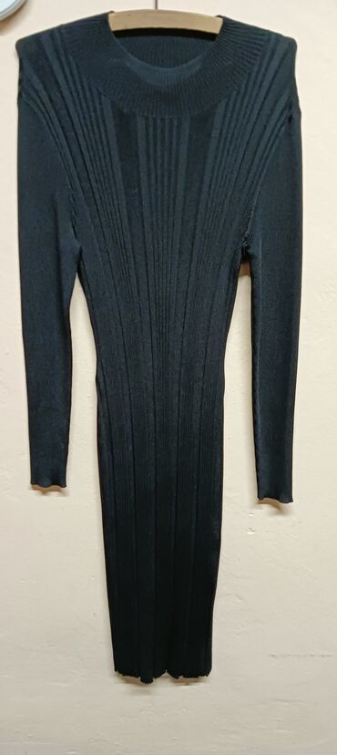 H&M crna haljina.Midi haljina.Bez oštećenja.Velicina L,dužina 114 cm, dužina rukava 62 cm.Rastegljiva,puno elastin.