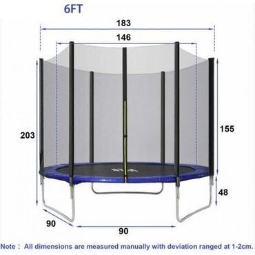 - Prečnik konstrukcije: 183 cm (skakaća površina približno 146 cm)