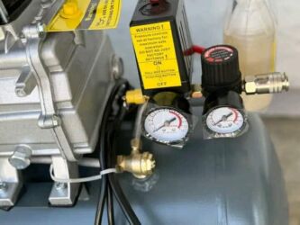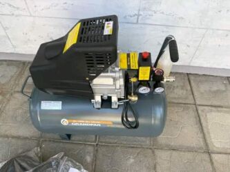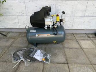 Praktičan za pneumatske alate, duvanje, farbanje i druge radioniske poslove. Robustna metalna boca, jasne oznake i upozorenja na kontroleru pritiska za bezbedan rad. Dolazi u fabričkom pakovanju sa pratećom dokumentacijom/grancardom proizvođača (vidljivo na fotografiji).