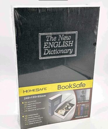 - Spoljašnji omot saštampan kao korice rečnika; oznake na pakovanju: “HIDDEN & SAFE”, “SECURE-LOCK”.