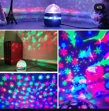 - Kompaktna kupola koja projektuje zvezde, mesec, snežne pahulje i druge šablone po zidovima i plafonu
