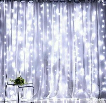 - Tip: LED svetleća zavesa (viseće svetlosne niti sa gustim mini sijalicama)