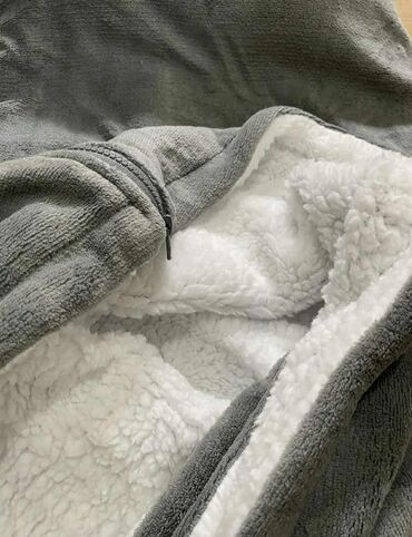 - Topla i mekana deka u sivoj boji, spolja pliš, iznutra beličasti šerpa/flis za dodatnu udobnost.